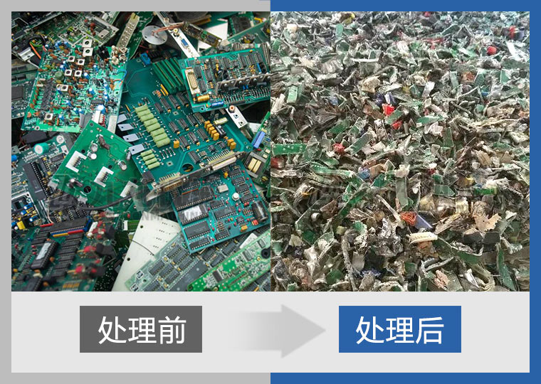 电子通讯设备、家用电器等电子产品中都有电路板,电路板中含有多种金属,其中最多的是铜,此外还有金、铝、镍、铅、硅等,其中不乏稀有金属。在废弃不用之后,可通过粉碎破碎处理将这些金属进行回收,实现资源再生利用。