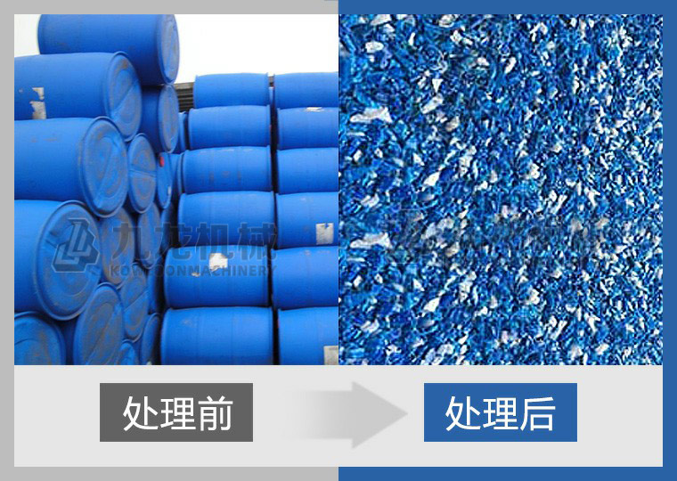 化工桶在工业生产中随处可见,随着使用年限的增加,就会产量大量废弃损坏的化工桶。化工桶所残留的化工原料对环境影响非常大,有毒,有害,重金属等,处理难道大、成本高。化工桶一般是HDPE、PE材质是可再生利用的资源,通过撕碎机破碎处理后可制成塑料颗粒,变成可循环再利用的原料。